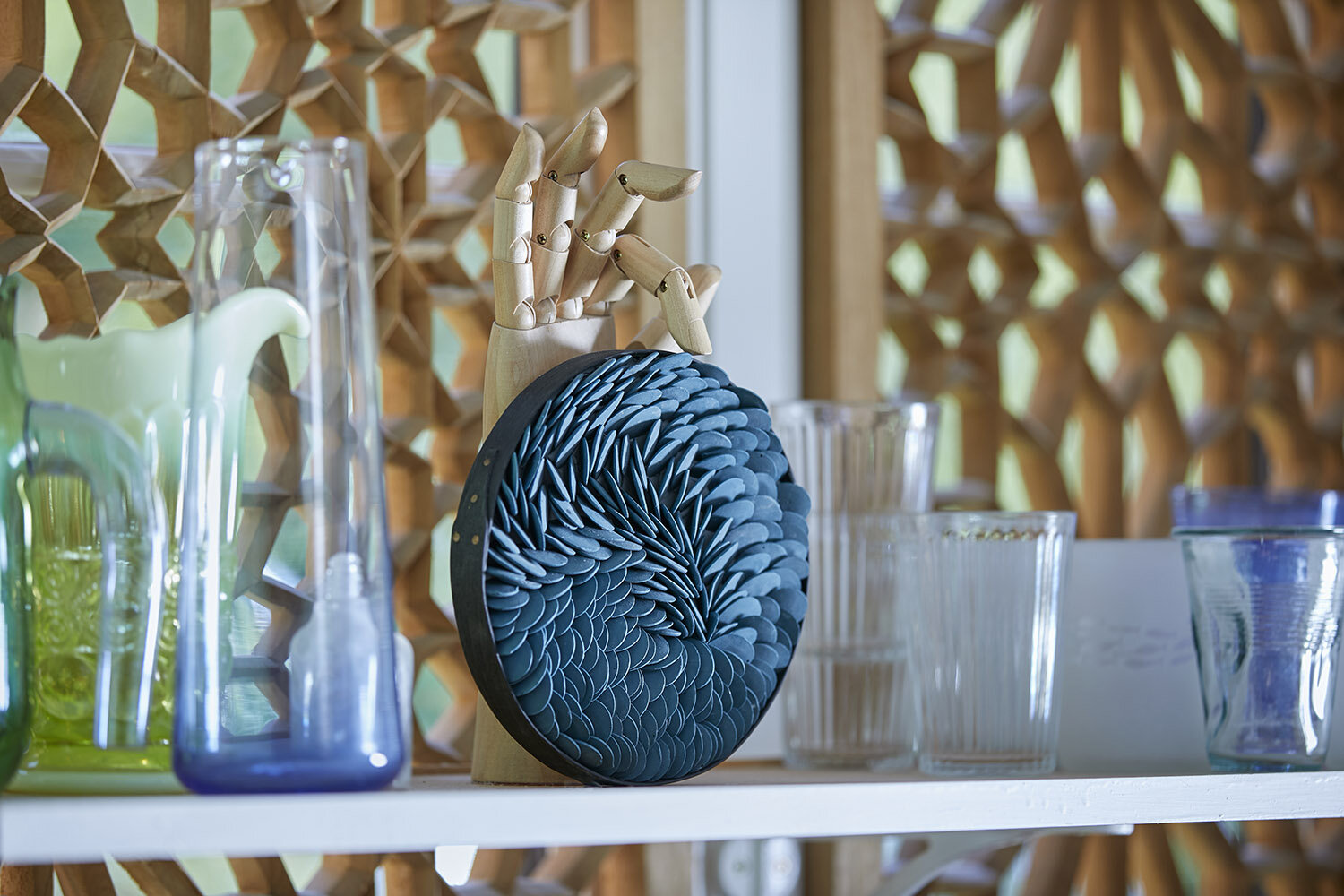 The wall-mounted ceramic artworks by this artist look incredible in basically any interior space. Their virtues are especially noticeable in the presence of natural light. When sunlight dances on the surface of these structures, their beauty is impossible to deny.