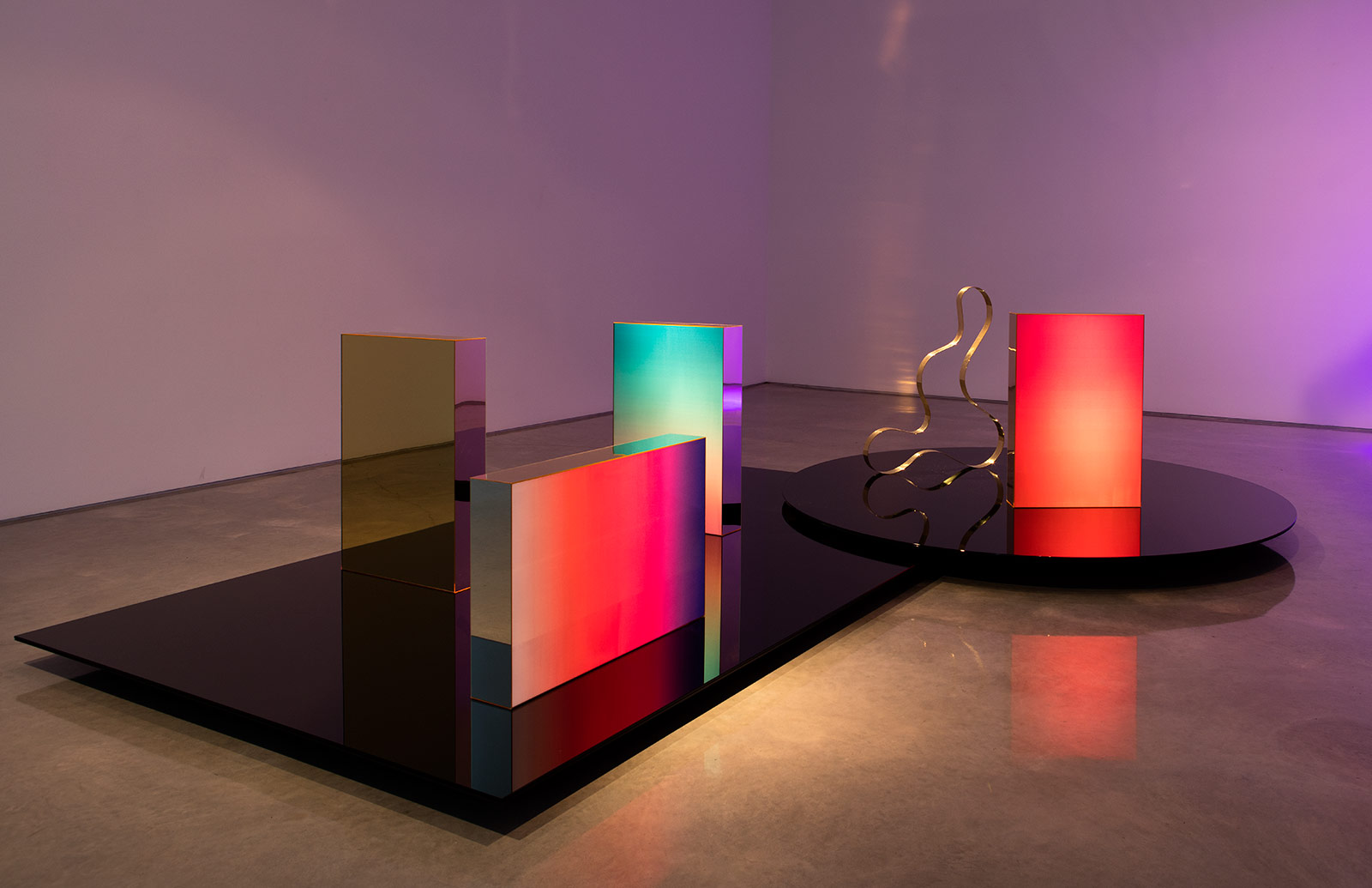 Voile, powder coated aluminum, mirror polished brass