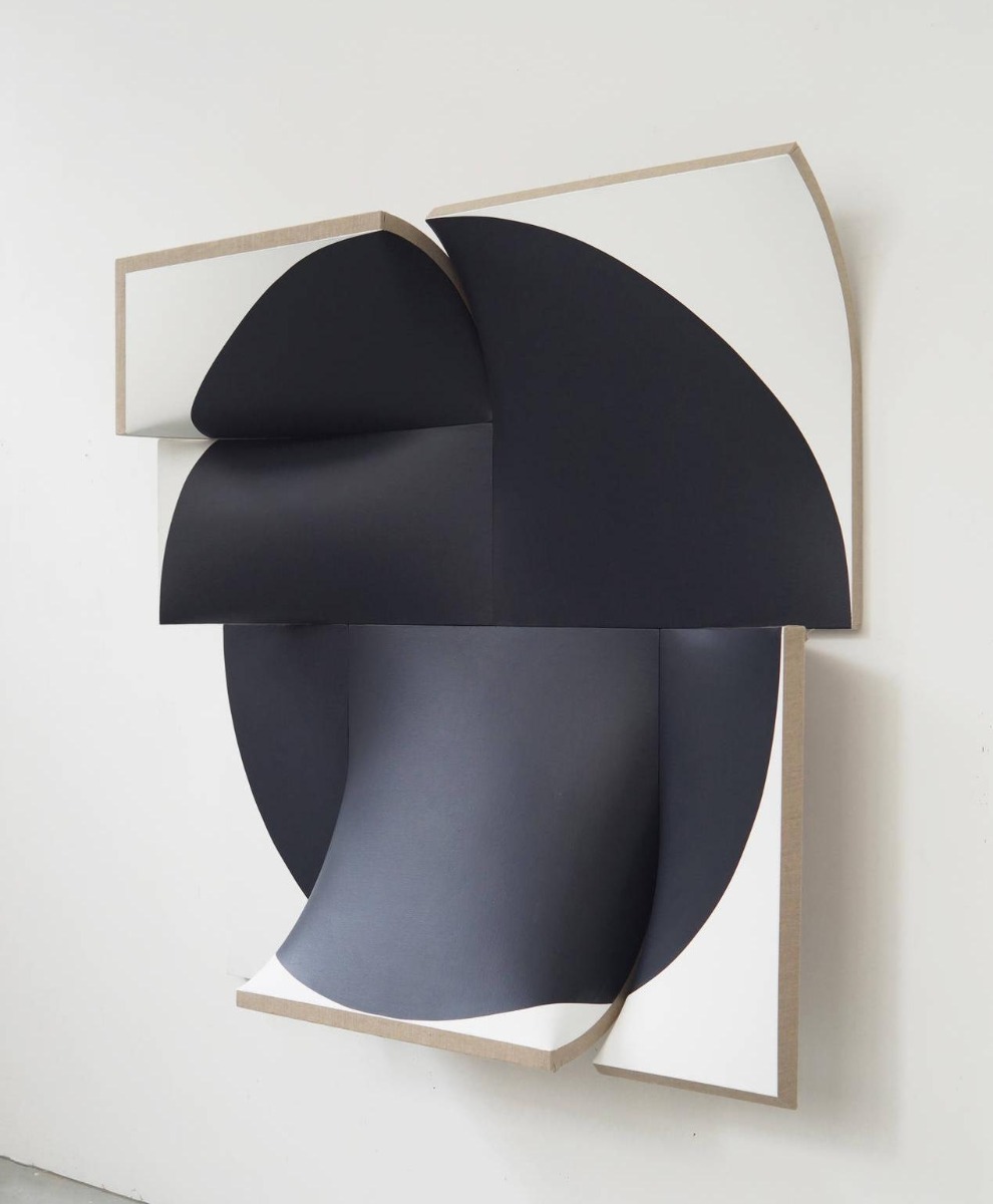 “[The] most challenging is to get rid of the structure of the linen,” said Voskuil. “This requires a lot of layers of primer and sanding. As industrial as it looks, it actually intensifies the craft. Everything I aimed for in my work, so far, comes together in the spraying; from the initial wish to avoid the handwriting and individualism of postmodernism to the merging of design, painting, and space.”