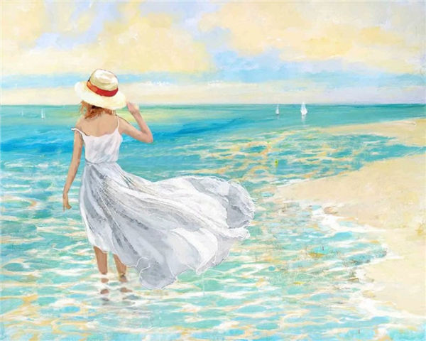 A Girl on the Beach Acrylic Painting