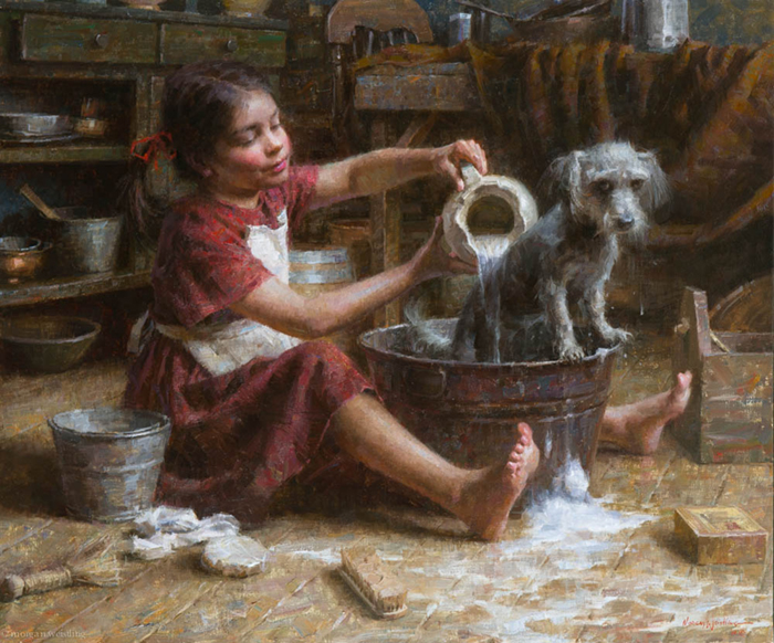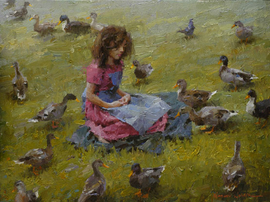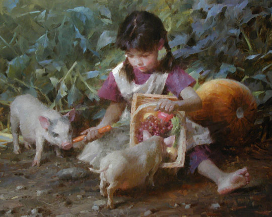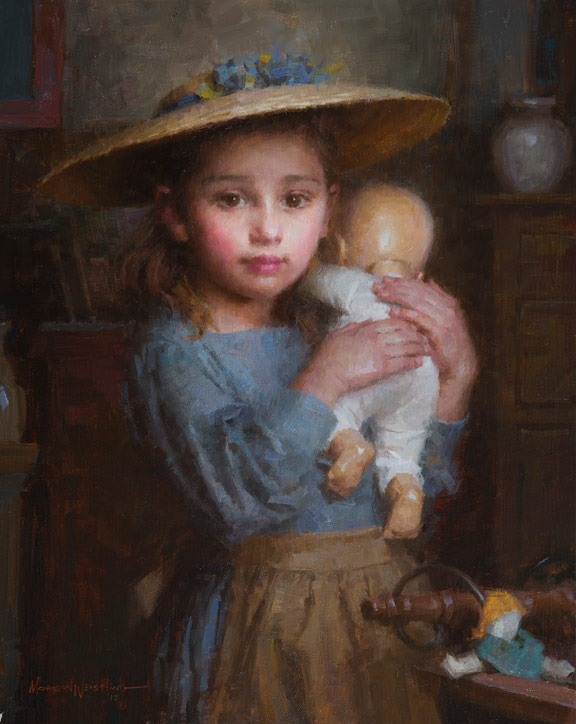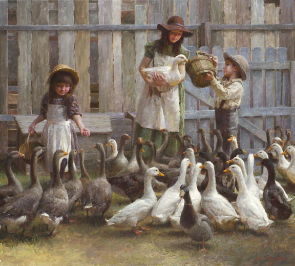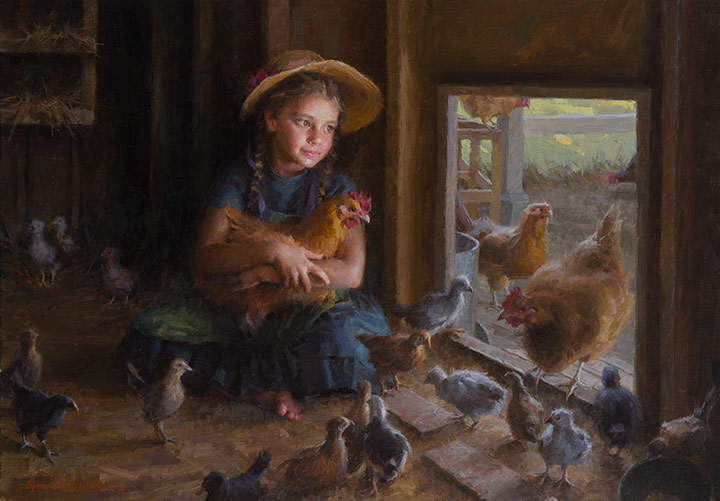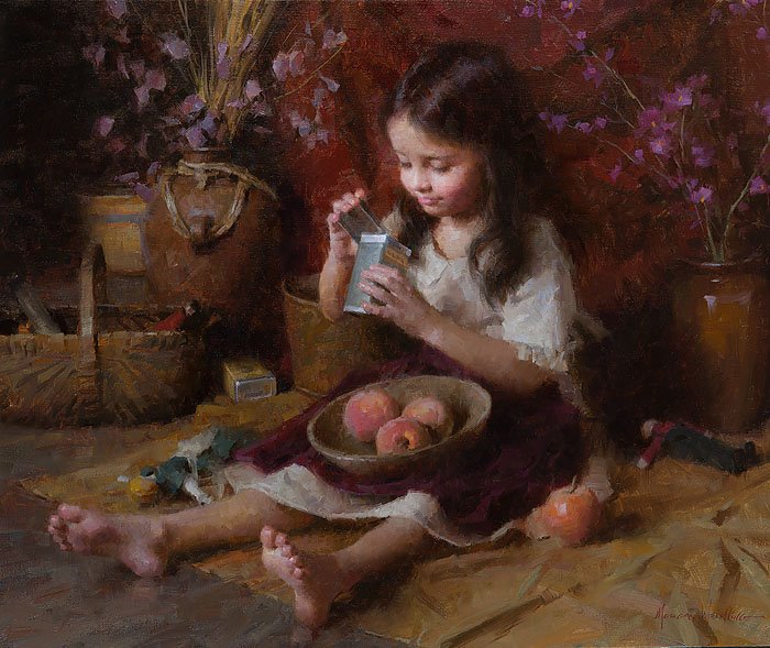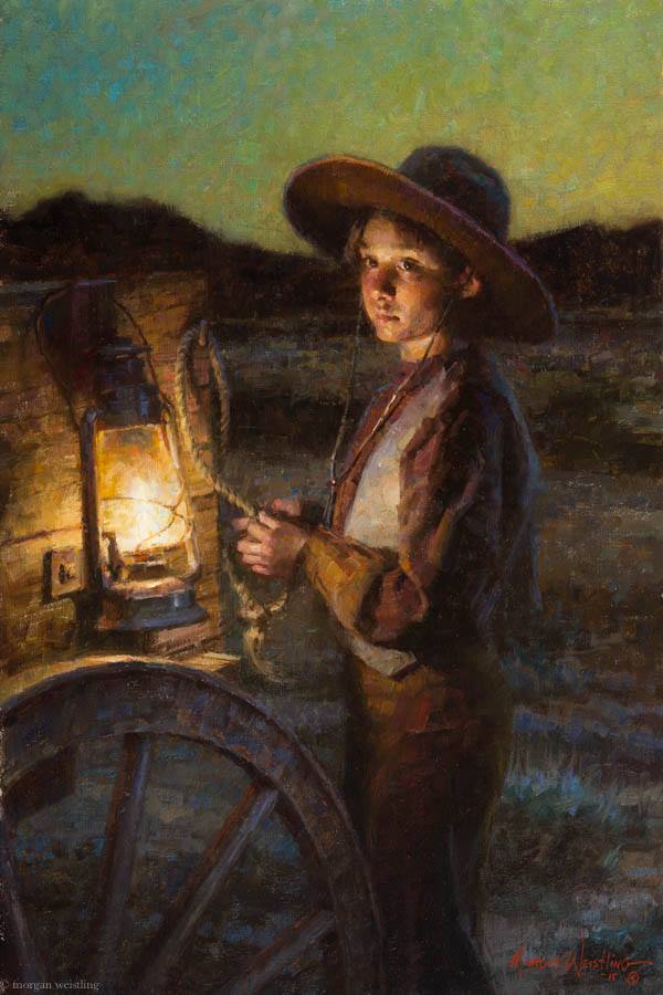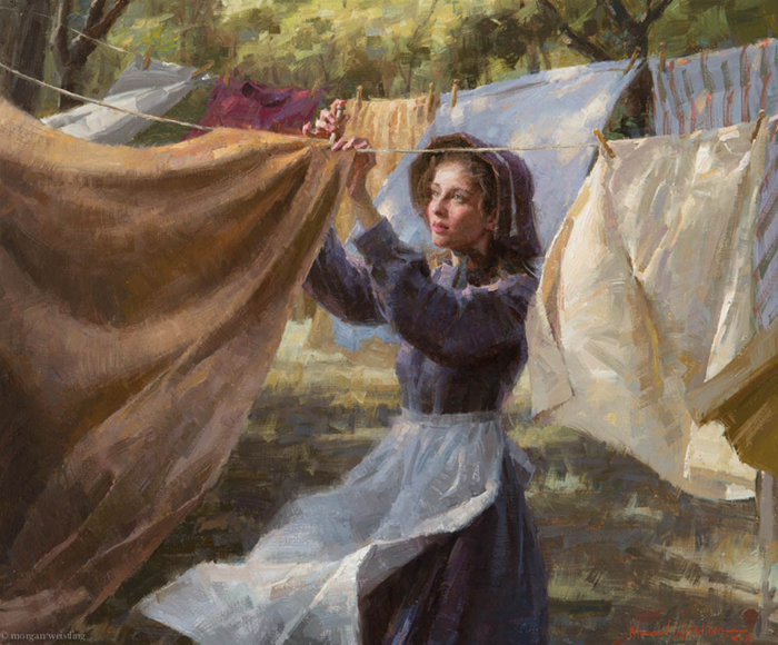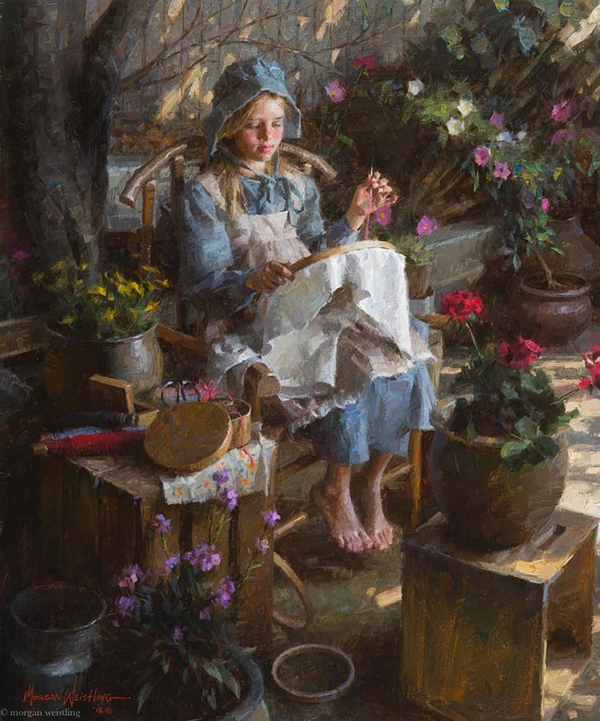 After leaving the illustration, Morgan quickly became famous throughout the country for his superb oil paintings. These oil paintings show his time-honed painting ability and his masterful control of value, edges and light. He can use his years of illustrator experience to create superb works with multiple characters and single character settings. In most cases, his works are works of the times, evoking a more gentle and elegant era. He grasped the mood and atmosphere of the past, and his attention to the historical aspects of the subject matter came from his depiction of the truth, goodness and beauty of American pioneering spirit.