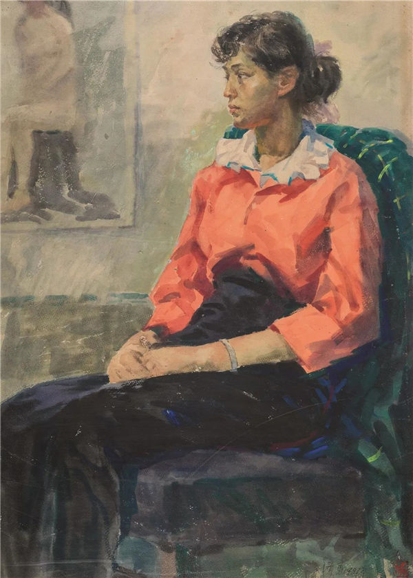 The Woman in Red, watercolor, 1981
