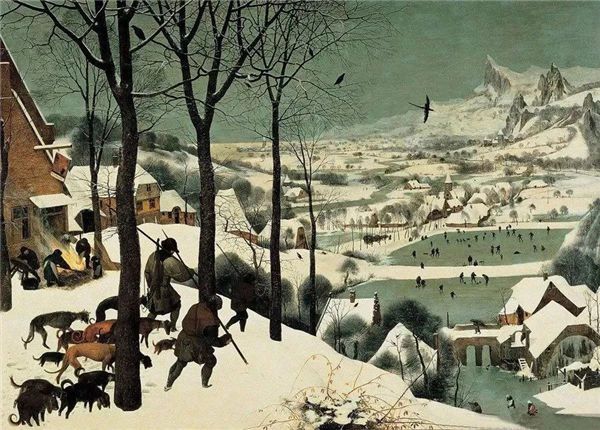 "The Hunters in the Snow" was created by Peter Bruegel the Elder (1525-1569). In a snowy scene wrapped in silver, dark black trees stand on the left side of the picture, and they form a vertical line with the edge of the painting. The trees follow the direction of the hunter's advancement, and follow the "shortening method" of perspective. Guided by the vision, the viewer walked to the ice in the valley, and the villagers frolicking on it. A black magpie flying over their heads just connects the nearby trees with the mountain in the future. The viewer will be immersed in this world of ice and snow and will never forget to return.