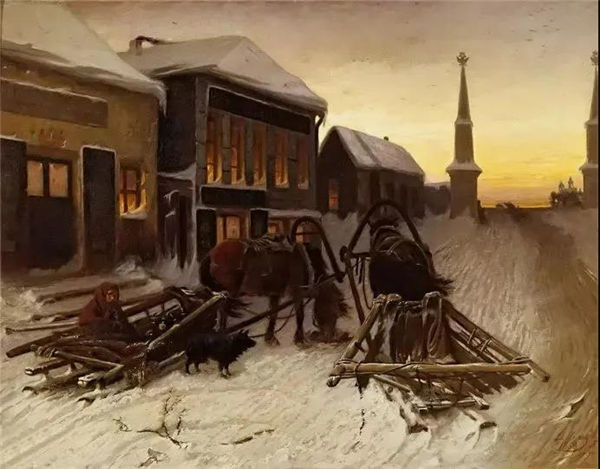 "The Last Tavern at the City Gates" by Vasily Perov, the mainstay of the Peredvizhniki, is a masterpiece of Russian art. In the dim light of a cold winter night, the window of the tavern shines turbid light, where the farmers squander the meager income of the day. In a gust of wind, a poor figure wrapped in a turban, shivering on the sled. This is a female farmer waiting for her foster family to drink and have fun. The dark colors and brown tones are like sad chords, and through expressive brush strokes, the feeling of sadness and despair is enhanced. In the mature works of the painter Perov, the theme of deep pity for those who sacrificed as a cruel and unfair society becomes very obvious.