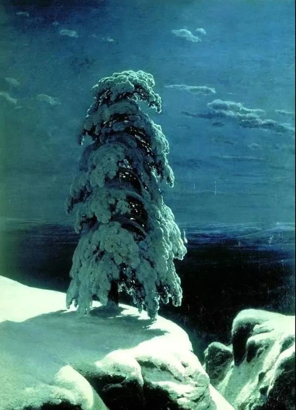 This painting is an illustration by Ivan Shishkin for Lermontov's poem "Northland in the Wilderness". The land is covered with snow and ice, and under the night, it looks deeper and wider. On the snow-covered rock, a small pine tree is wrapped in silver clothes, like a glamorous beauty, standing proudly. The whole picture is full of rich poetry. In fact, Shishkin's landscape paintings have always contained a poetic mood. "In the Wild North" is based on the light and shadow characteristics of moonlight, and the composition is simple, neat and magnificent to highlight its poetic mood. This is an immortal masterpiece in the history of Russian landscape painting.