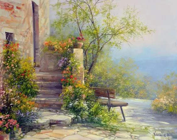 Why do painters like to go to places with beautiful scenery to sketch from life? There are not only beautiful scenery in the oil painting, but also the author's own feelings. The painter does not copy the scenery mechanically, but also originates from life, higher than life, casting beauty with his years of precipitation!The superb skills and profound knowledge gained through many years of time, money and energy. The artist would rather save money for meals or other pockets to buy books and painting materials. With hard-earned money to buy knowledge, we should understand and support it.