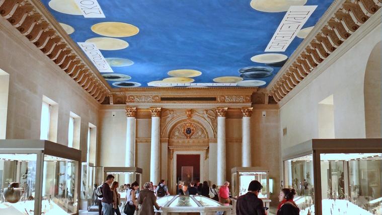 In 2021, the American artist, Cy Twombly, completed an installation called ‘The Ceiling’ in the Salle des Bronzes gallery. A light blue sky with playful yellow circles adorned the ceiling of the room.