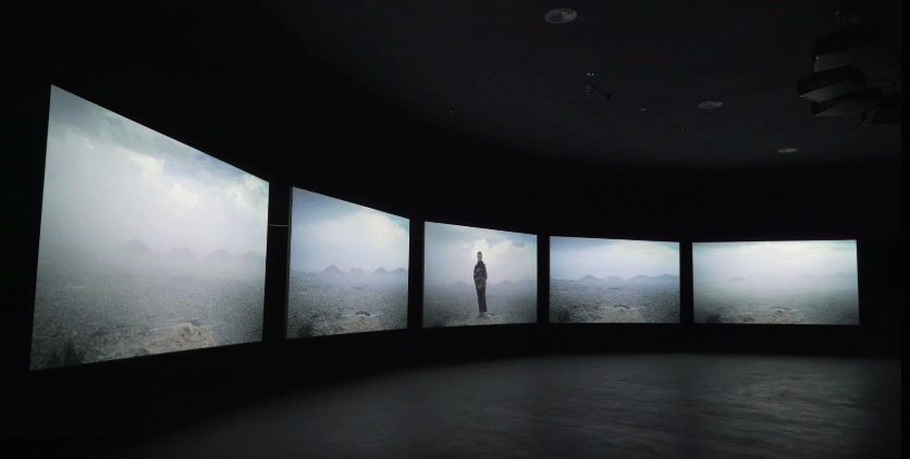 Aziz Hazara, Bow Echo (Video still), 2019, Duration: 4 min 6 , Five channel HD video, color, sound, Video produced by the Han Nefkens Foundation,