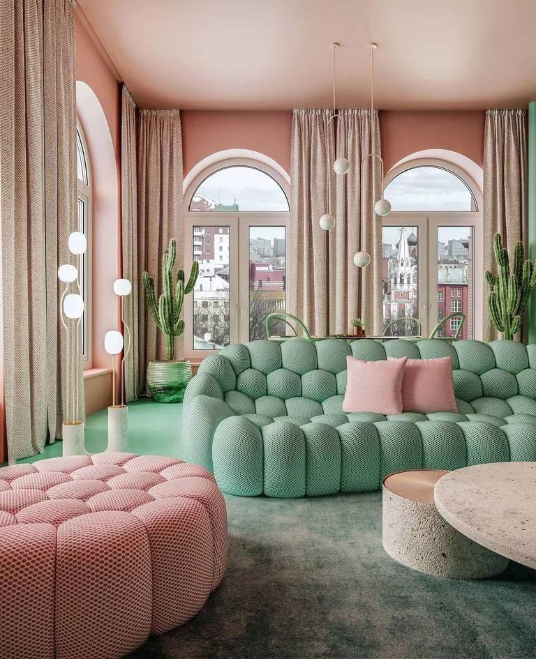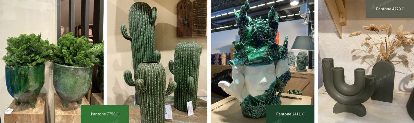 New declinations of greens: from muted mints, soft sage, pistachio, to earthier olive green.