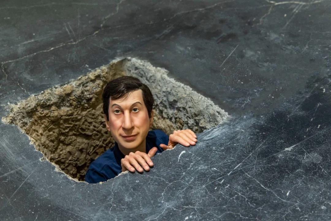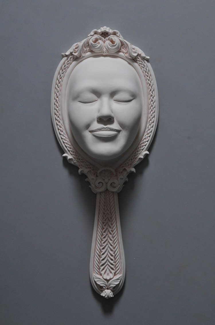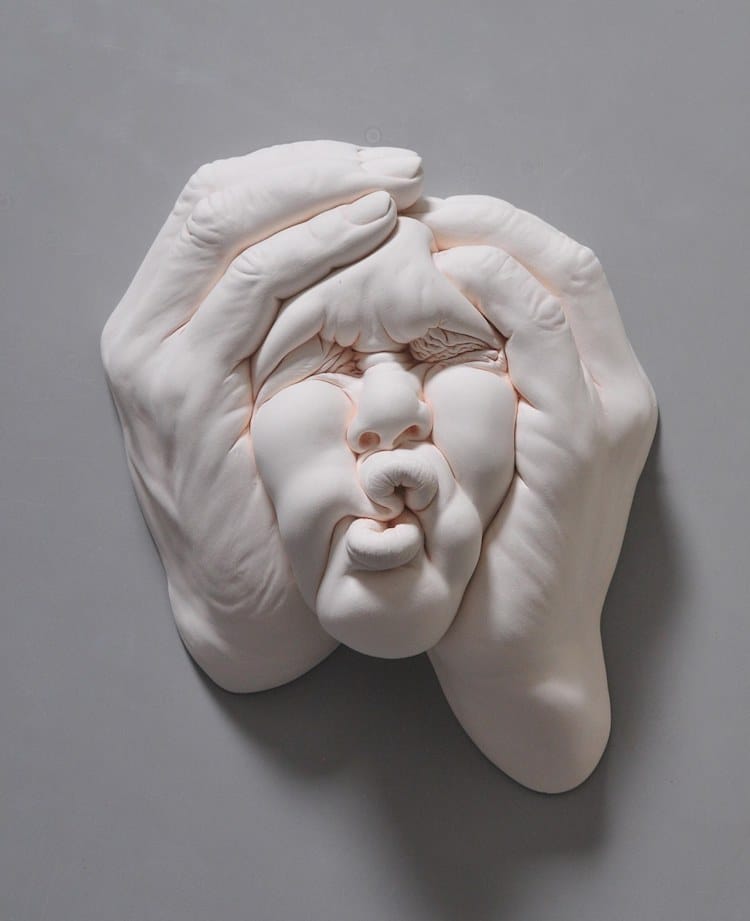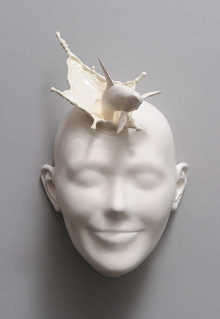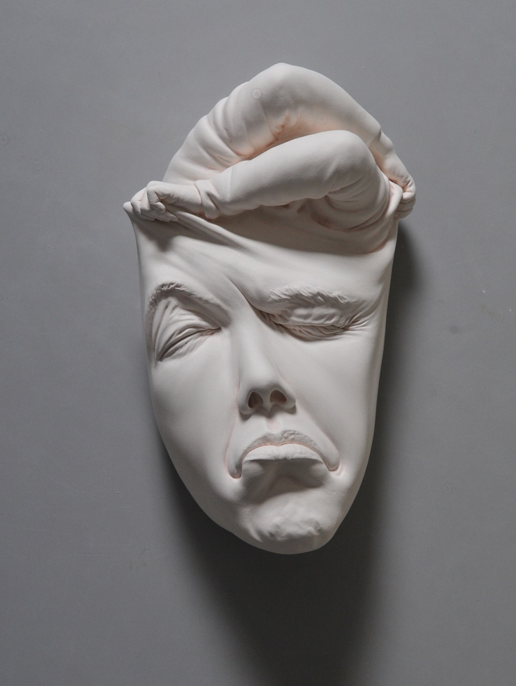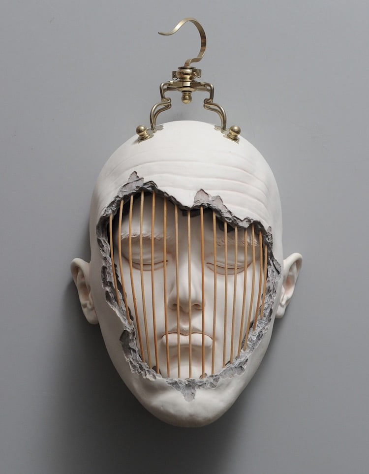 Lawful Custody is another instance where Tsang combines realistic facial sculptures with his surrealist imagination. This sculpture looks like a broken shell with a human face on the inside. The face is at a similar resting position like Here and There is. The face is behind bars and could represent a number of powerful messages here. Is it a clever way of showing that people are limited by their own subconscious? Or could it be the fact that people lock away their genuine emotions?