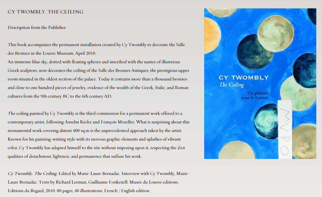 This month, the Cy Twombly Foundation and the Louvre finally reached an agreement regarding renovations in the Salle des Bronzes gallery. An installation by Cy Twombly has been featured in the gallery since 2010.