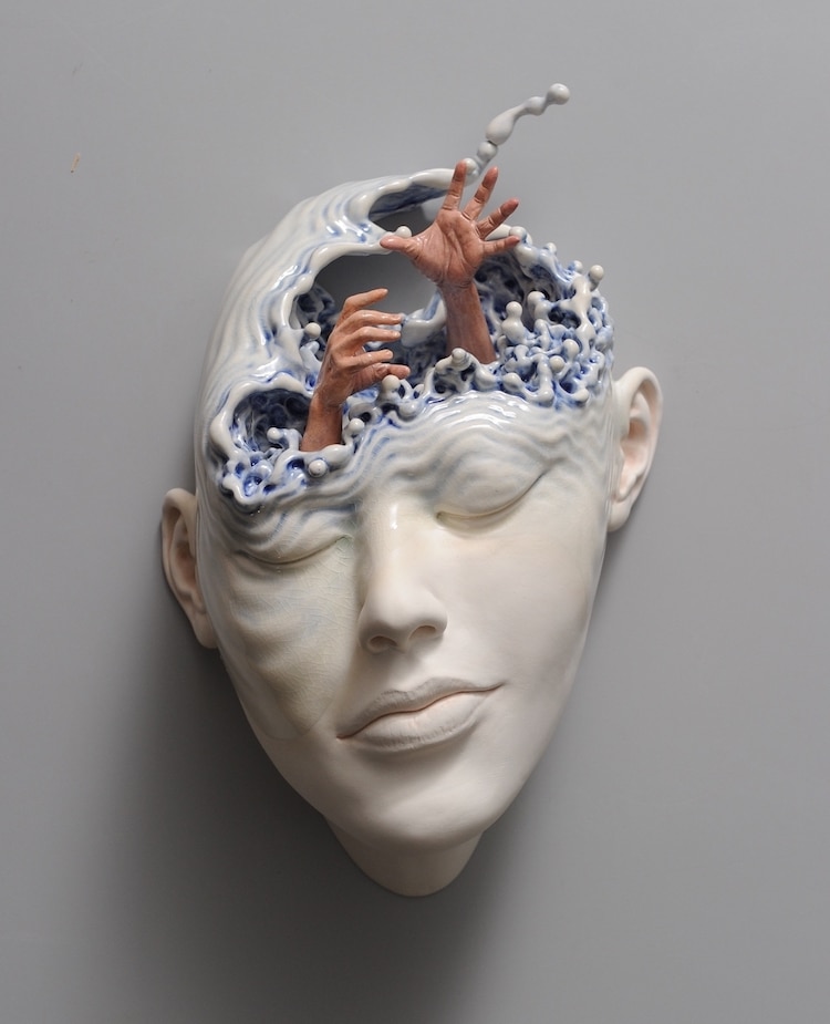 Tsang is best known for his face-shaped sculptures that display an array of emotions. In the Lucid Dream II Series, Tsang uses clay to create multiple human faces that appear twisted, contorted, and literally bend the mind. He focuses on human subconsciousness and experiments like people have never seen before.