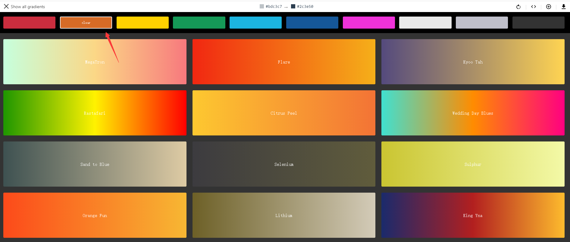 Click on one to display four color codes.