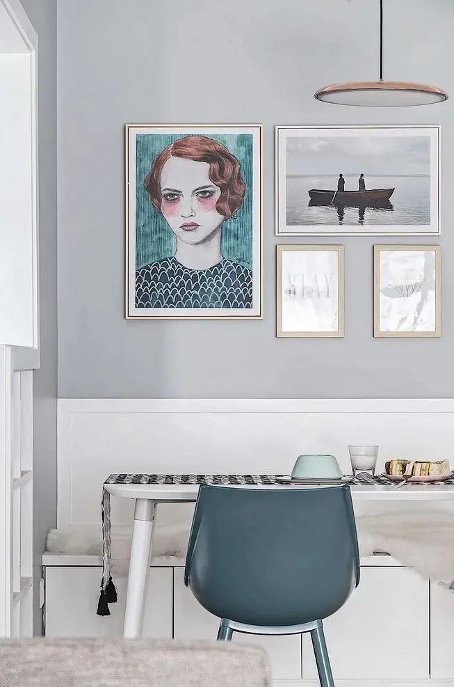 Choose home decor items and decorative paintings of the same color as the wall, which can be in various shades, but within the same color system.
