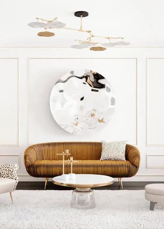 If you have brightly colored home decor, such as a golden-yellow sofa, it will be incompatible in a black, white, and gray environment. You can choose a black, white, and gray painting with gold to achieve the balance in the picture, and your sofa will become the finishing touch that makes the space easy to be naughty and lively.