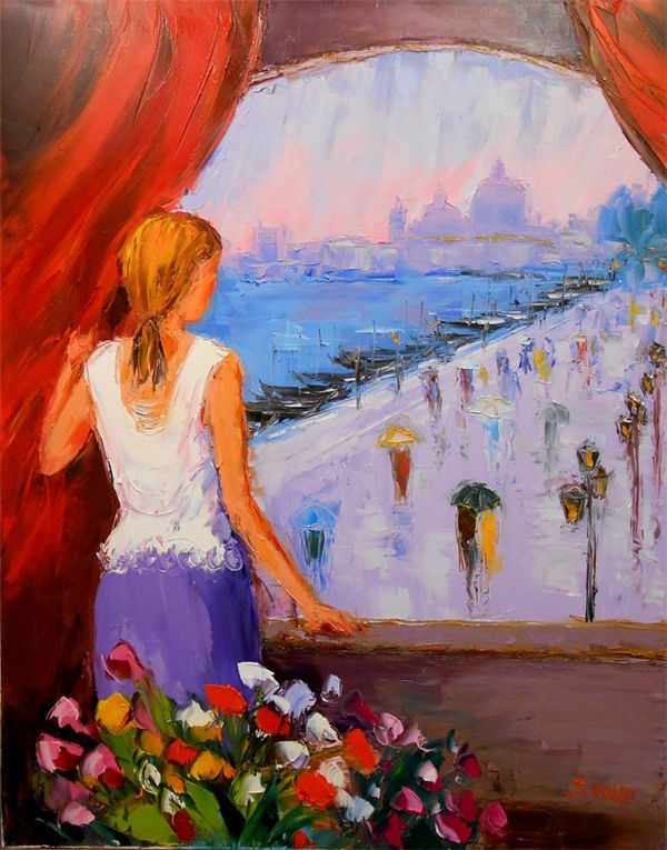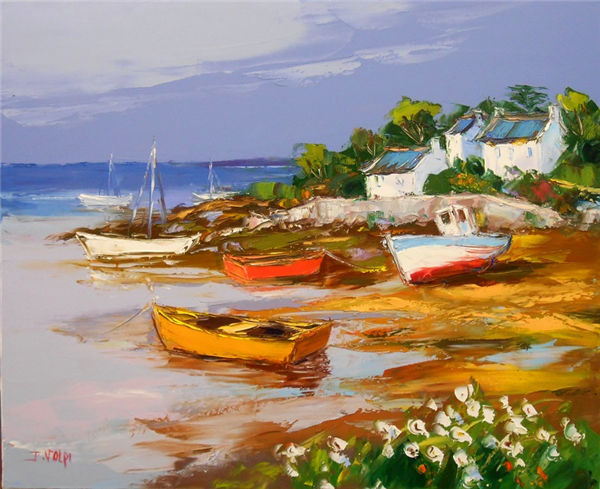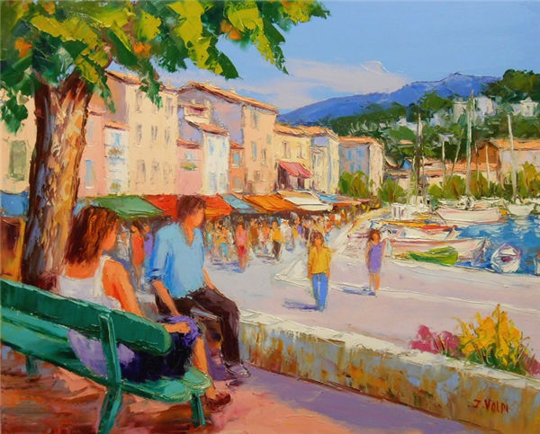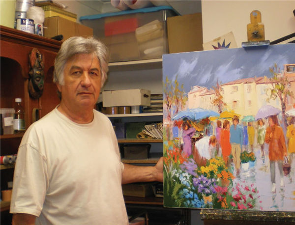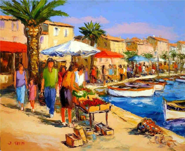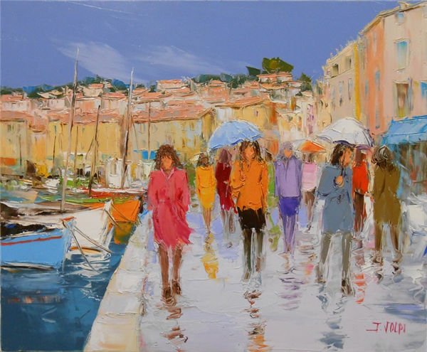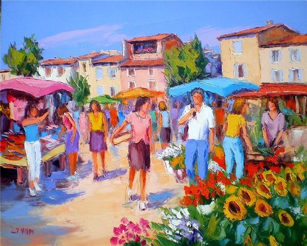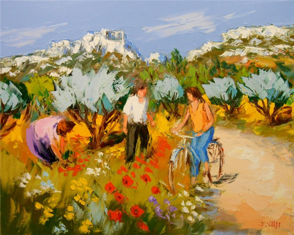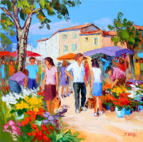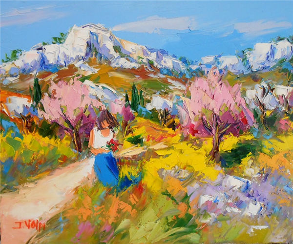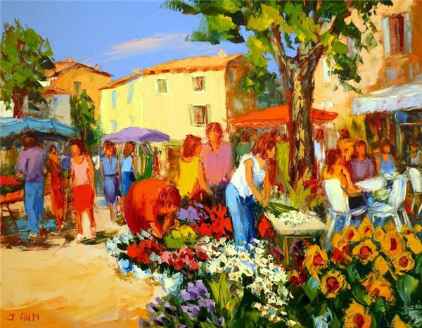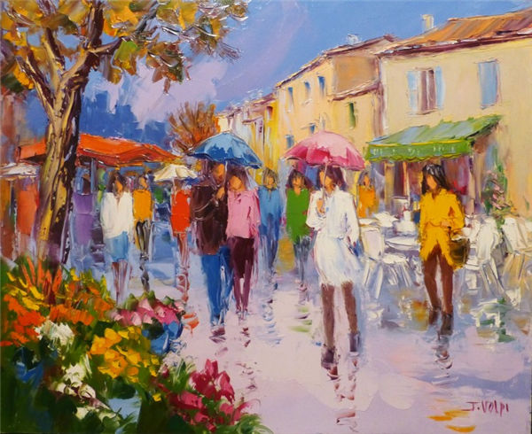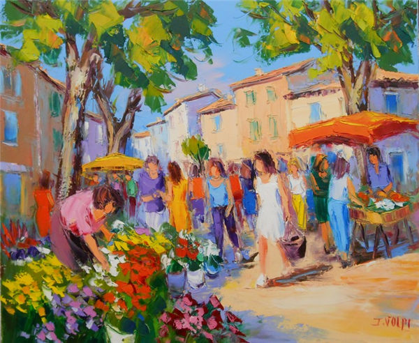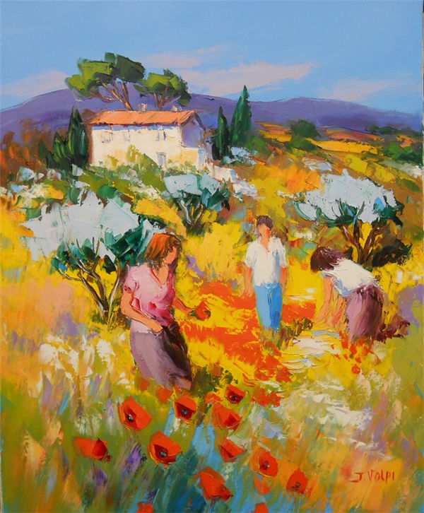 Jacques Volpi is a very famous painter from the south of France. He was born in Ales, Gare in 1948. He has painted in Cévenole and Provencal and has won many awards and medals. He uses the technique of the "knife" to paint, the subject is vivid characters, and the colors are lively. He is famous for the characters in the rain of noon of France in his works. He exposes internationally and his works are part of prestigious collections around the world.