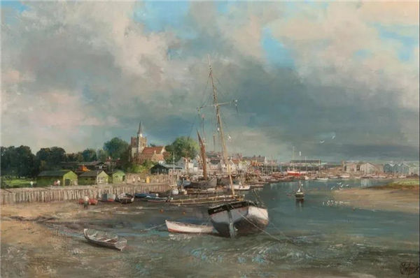 Clive Madgwick is an English painter known for his realistic English countryside scenery paintings, which depict trout fishermen, farmers working in the fields, and sleepy port towns. He was born in Surrey, England in 1934, studied dentistry at Gay Hospital, and took painting as a hobby until he became a professional in middle age.