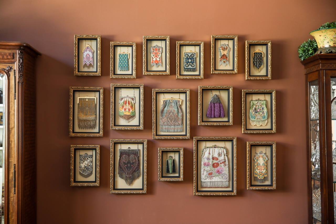 The white framed paintings, the pink walls, and the golden home decor are perfect.
