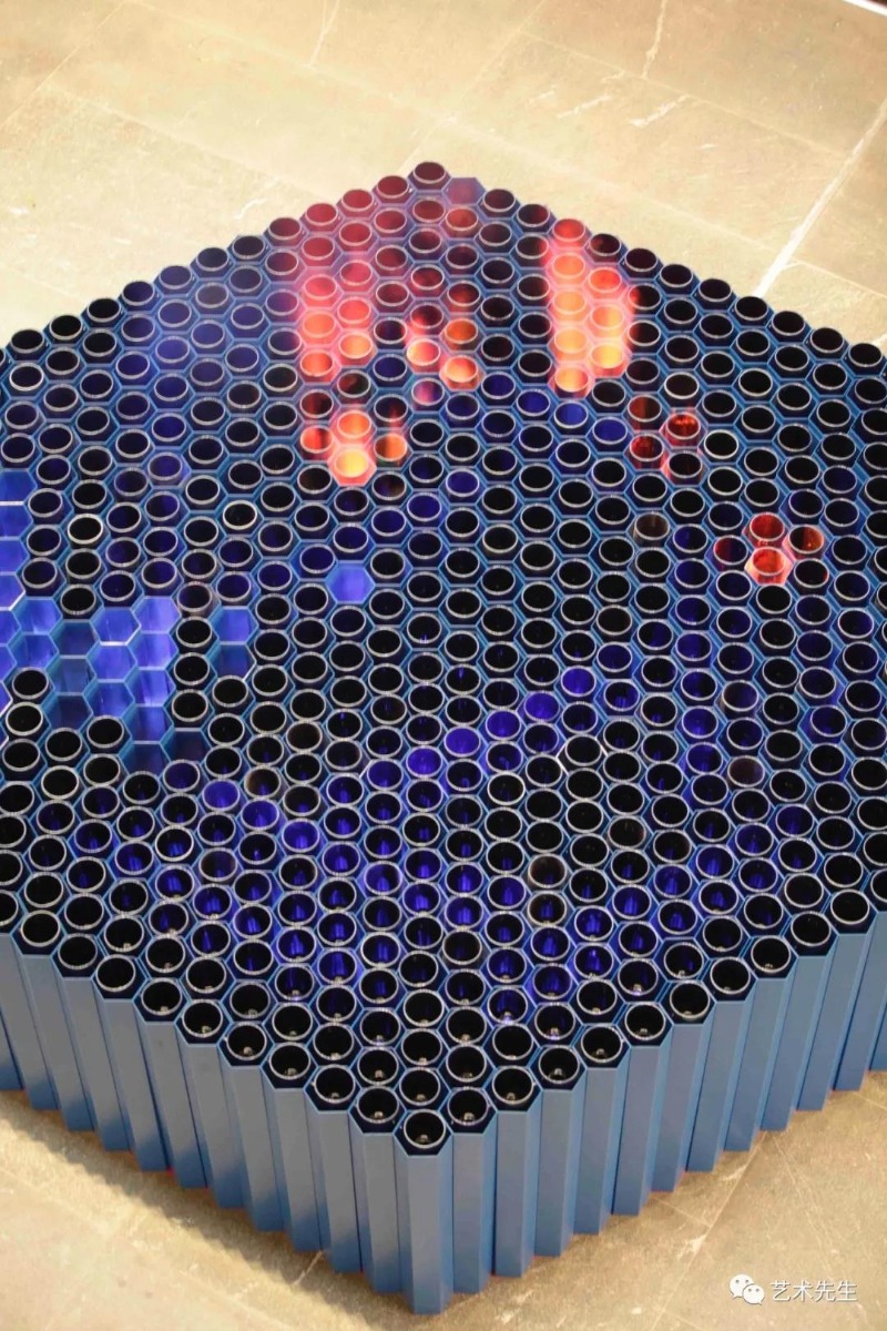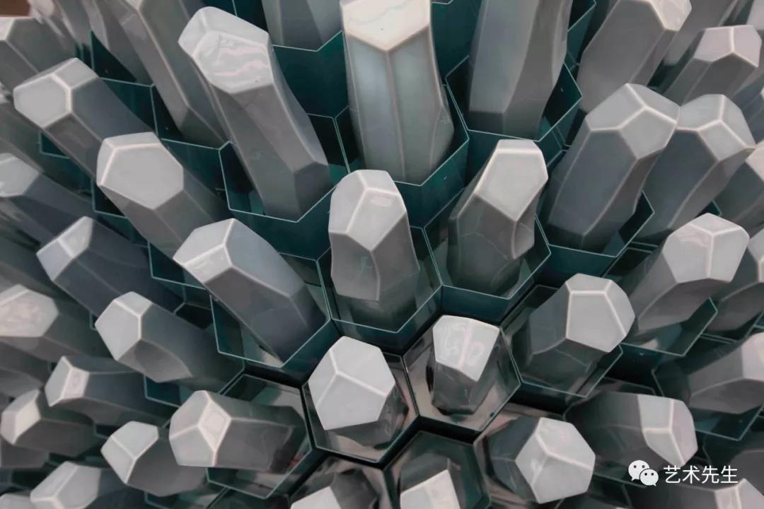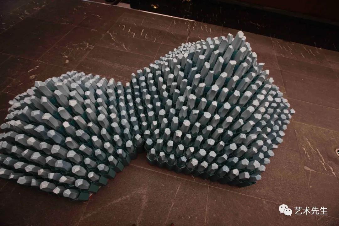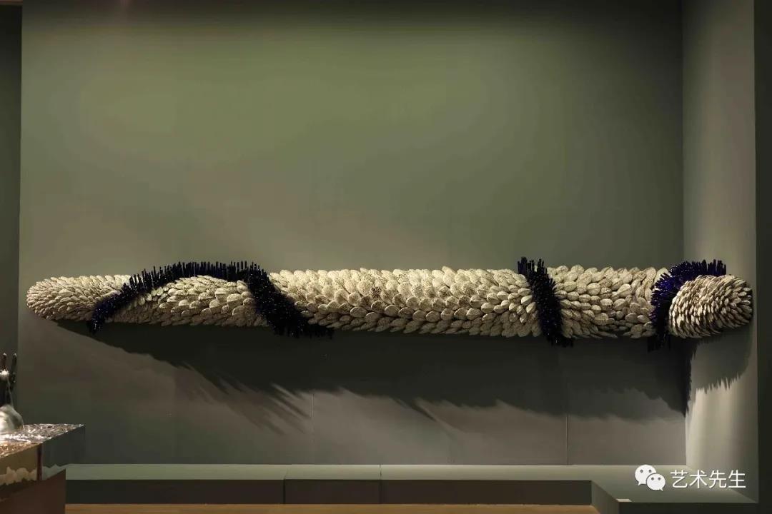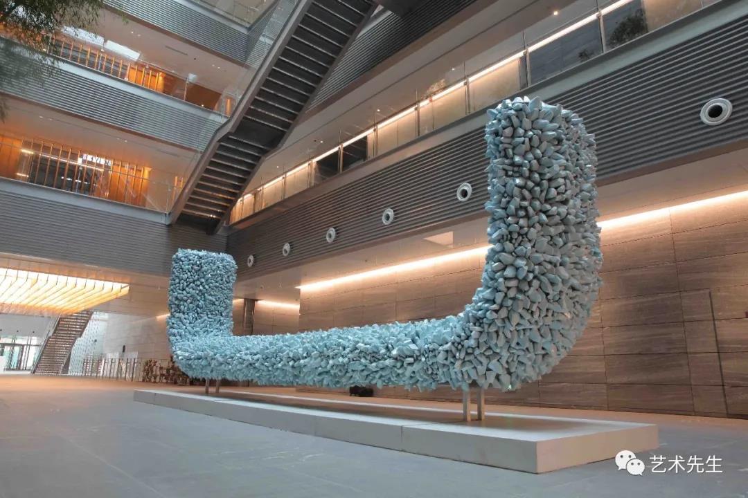 ▲Hetu Luoshu - Wanxiang or Wide Spectrum of Life 800x60x50cm Ceramic and Metal 2014-2016While I respect astrophysics that has a large development prospect, thinking of some objects in a macroscopic view, I also go into the opposite category, looking at smaller, more microscopic structures as a reference. This new work widely employed some elements related to human emotions, such as proteins, benzene rings, DNA sequences. I was deeply fascinated by the world of macro and micro because they are so similar, so mysterious in this exploration process. I think this is also a prelude for my works to turn from macro to micro. You may entirely make an association out of natural water through macro or micro, and into the expression of microstructure from Sound of the Sea.