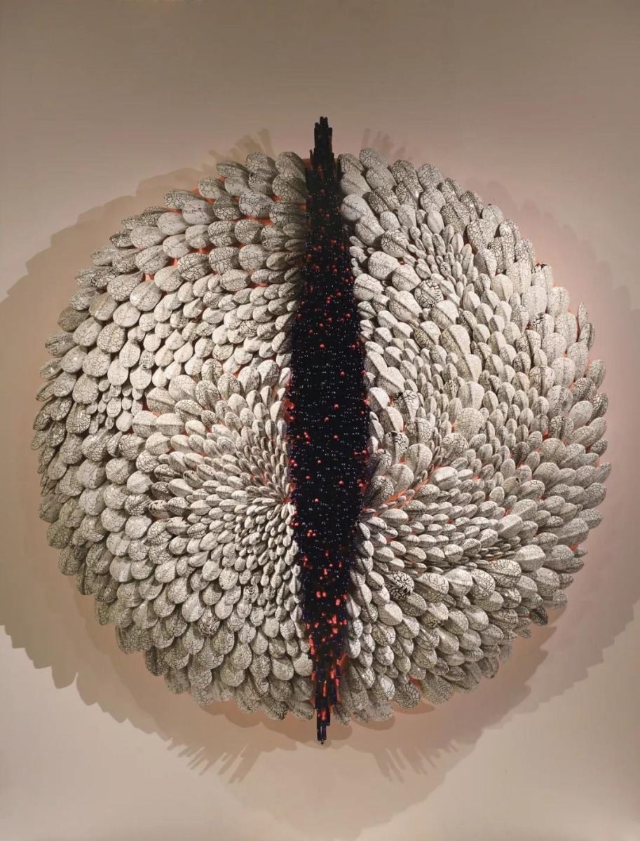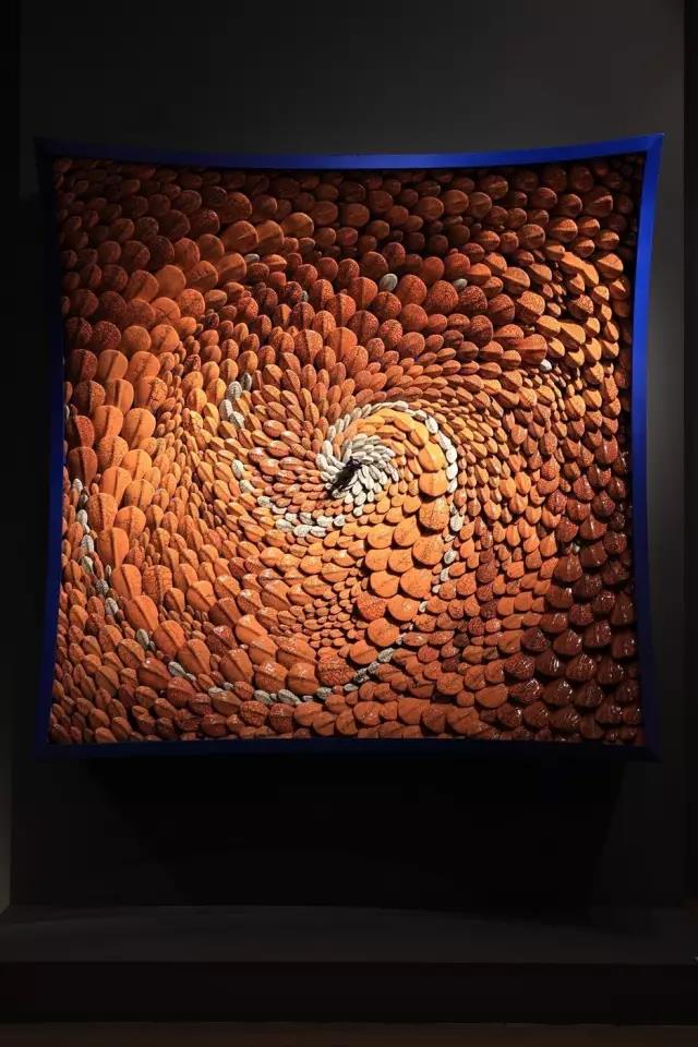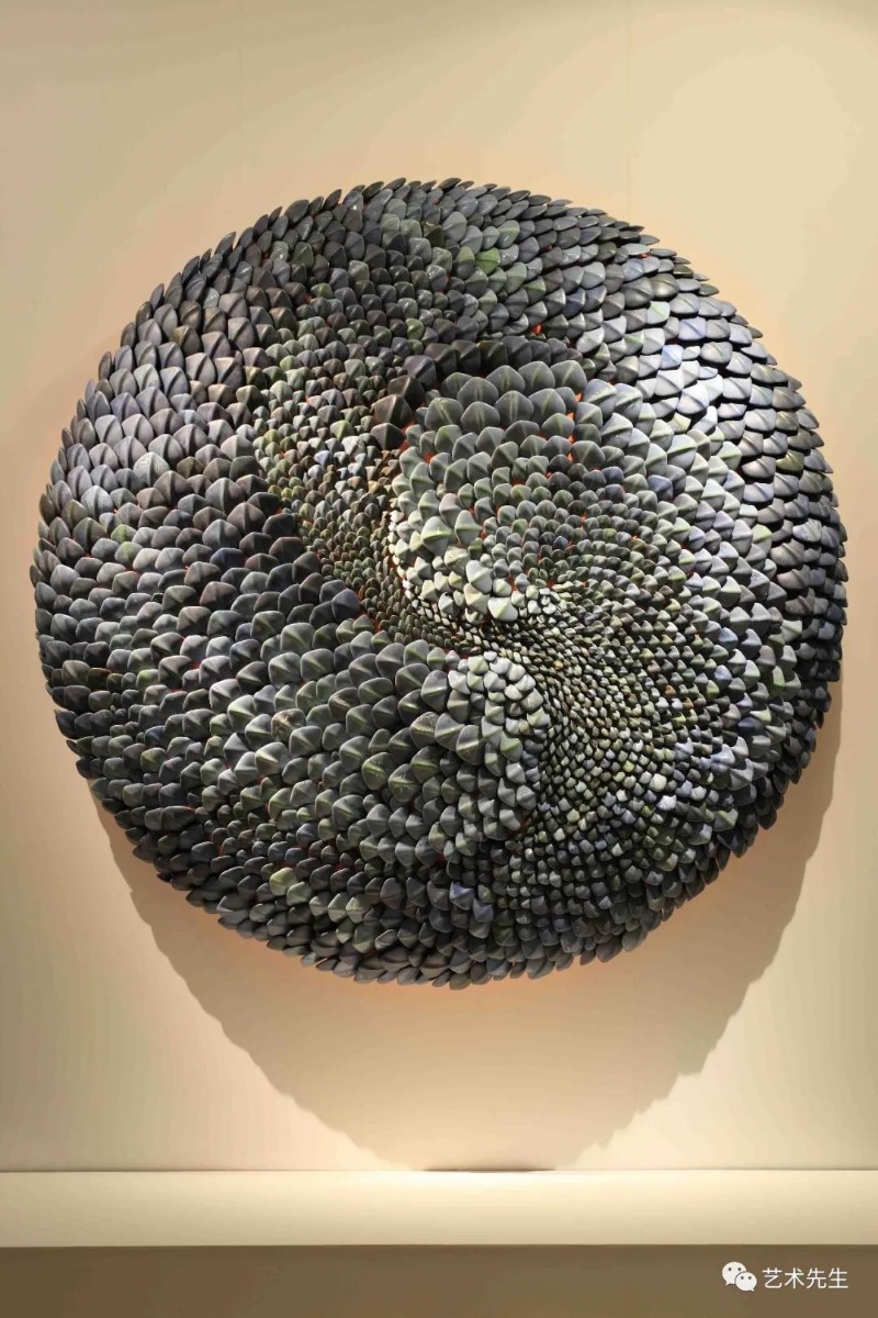 ▲Hetu Luoshu-Earth Sign or Geo-phenomenon 220x220x70cm Ceramic and Metal 2014-2016Nature is the source of all, while art is the condensation of the artist's ontological values and all externalization, such as culture, history, techniques, aesthetics. After having a certain goal and method, I was thinking about how to transform, and what comes to mind was big boiled dry silk. It is too easy to simulate nature. Soybeans, for instance, can't be boiled, can't be stir-fried, can't be ground into powder. It can't be work but made into tofu with brine. At this point, tofu becomes a bit like art. Brine, much like the description of inspiration in art, means a flash of brilliance. There is no divine spark at all but a stupid experiment time by time. Like tofu, fermented bean curd, bean curd sheets, soya bean has formed their new appearance in the transformation time by time, but their original appearance will disappear, thus catching endless imagination beyond soya bean. My way is to make art from the natural images then out the images to form a new expression.