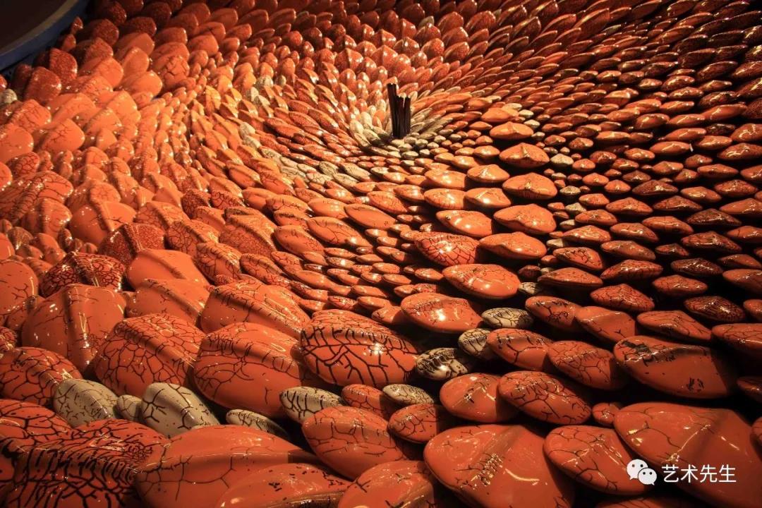 ▲Moon 140x140x80cm Ceramics and Metal 2017When I was working on Sound of Heaven, I saw many sunk panels on the stage in the south of China. We have been using an object to symbolize celestial phenomena through ancient times. The solar system is a point in the Milky Way's 1 billion planetary systems, and it's not that big. I've done a lot of experiments in my initial works based on the Milky Way Galaxy over the last eight years. Some people say it looks like a pine cone, and I say yes, it's "The Universe in a Nutshell" by Stephen Hawking.