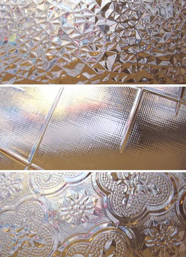 There are several types, such as transparent, translucent, colored, and colorless. You can refer to the texture of the embossed glass. Acrylic can also shape these textures for interior decoration, like doors, and windows, etc., and also can show transparency but not perspective.