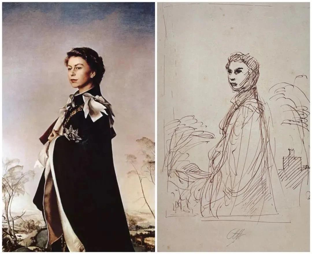 There are also a large number of sketches in the exhibition. Among them, the draft portrait of Queen Elizabeth he painted is very precious. The simple outline of the lines makes the queen’s charm and temperament emerge.